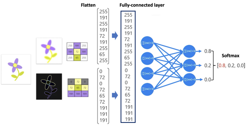 평탄화 하고, 다음 노드로 간다 CNN Example