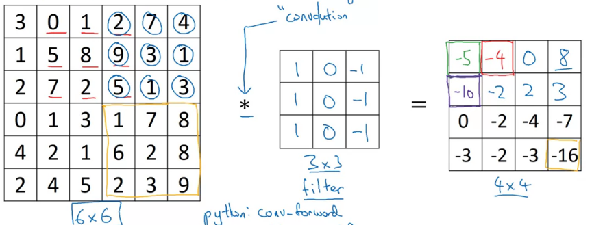 \((n\times n\)) 이미지를 \((f\times f)\) 크기의 필터로 convolving 하면 \(((n-f+1)\times (n-f+1)\))크기의 결과 행렬이 출력될 것이다