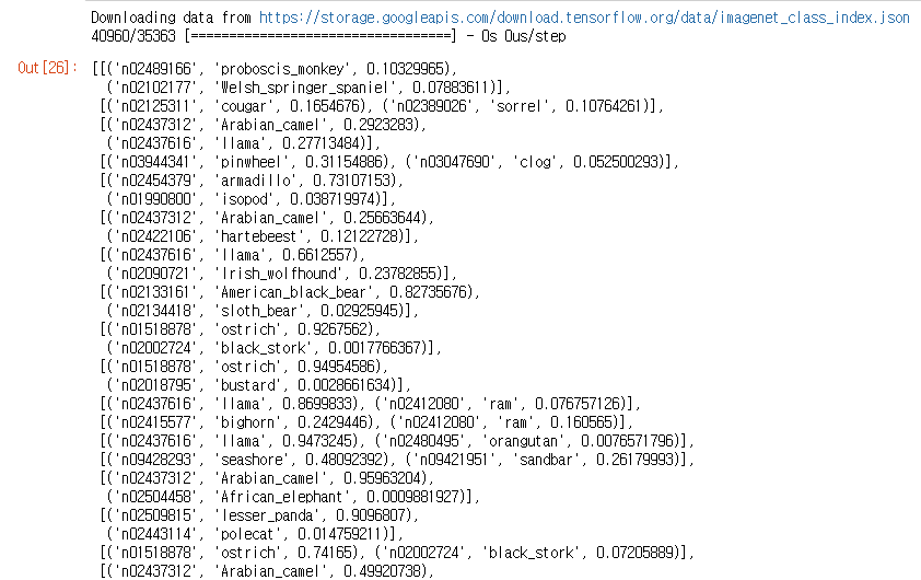 base_model.trainable = False image_var = tf.Variable(preprocess_input(image_batch)) pred = base_model(image_var) tf.keras.applications.mobilenet_v2.decode_predictions(pred.numpy(), top=2)