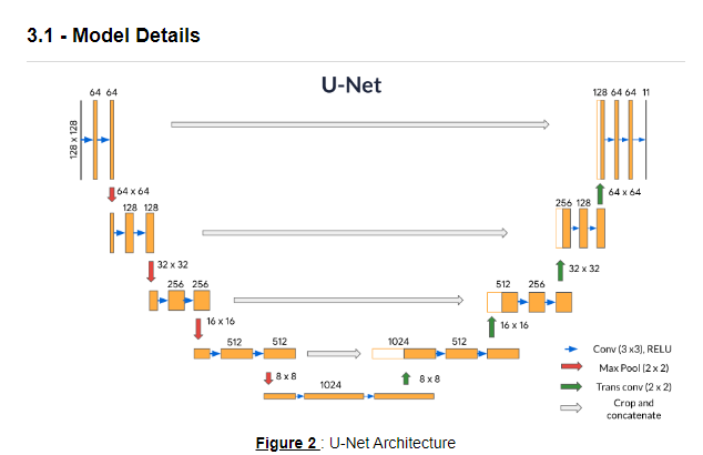 def upsampling_block(expansive_input, contractive_input, n_filters=32): """ Convolutional upsampling block Arguments: expansive_input -- Input tensor from previous layer contractive_input -- Input tensor from previous skip layer n_filters -- Number of filters for the convolutional layers Returns: conv -- Tensor output """ up = Conv2DTranspose( n_filters, # number of filters 3, # Kernel size strides=2, padding='same')(expansive_input) # Merge the previous output and the contractive_input merge = concatenate([up, contractive_input], axis=3) conv = Conv2D(n_filters, # Number of filters 3, # Kernel size activation='relu', padding='same', kernel_initializer='he_normal')(merge) conv = Conv2D(n_filters, # Number of filters 3, # Kernel size activation='relu', padding='same', kernel_initializer='he_normal')(conv) return conv자자 블록을 모두 만들었으니, 합쳐서 모델을 만들자 (사실 그냥 그림대로 조합하면 된다)