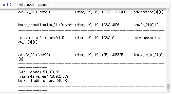 텐서를 보면 알 수 있듯이, 5개의 앵커 박스를 가지며 19 x 19 그리드로 처리했다