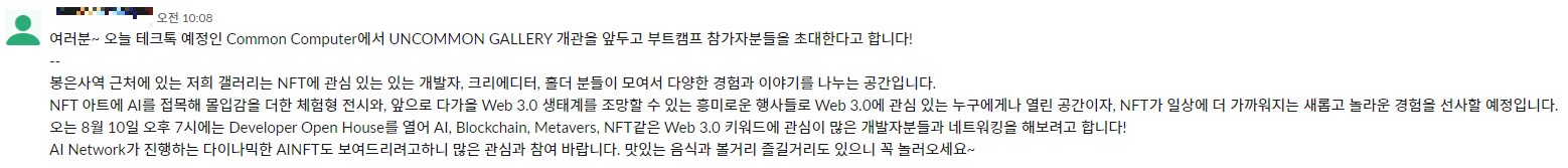 지난 8월 4일 테크톡을 진행한 커먼컴퓨터에서 "UNCOMMON GALLERY"에 개발자를 위한 Open house에 초대해 주셨다