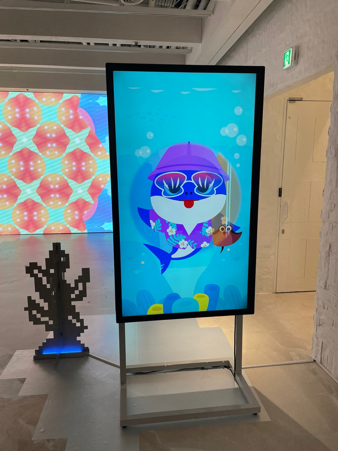 전광판에 귀여운 상어들이 계속 바뀌며 춤을 추고 있었다