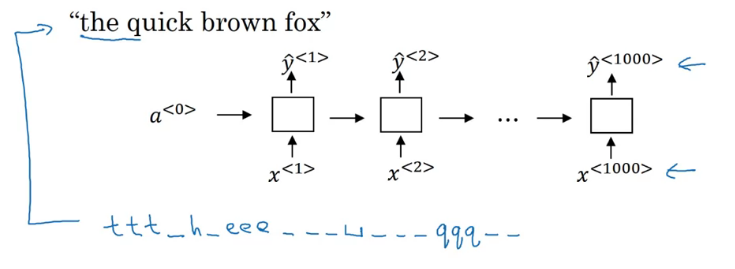 CTC cost 함수의 규칙은 공백으로 구분되지 않은 중복 문자를 제거한다