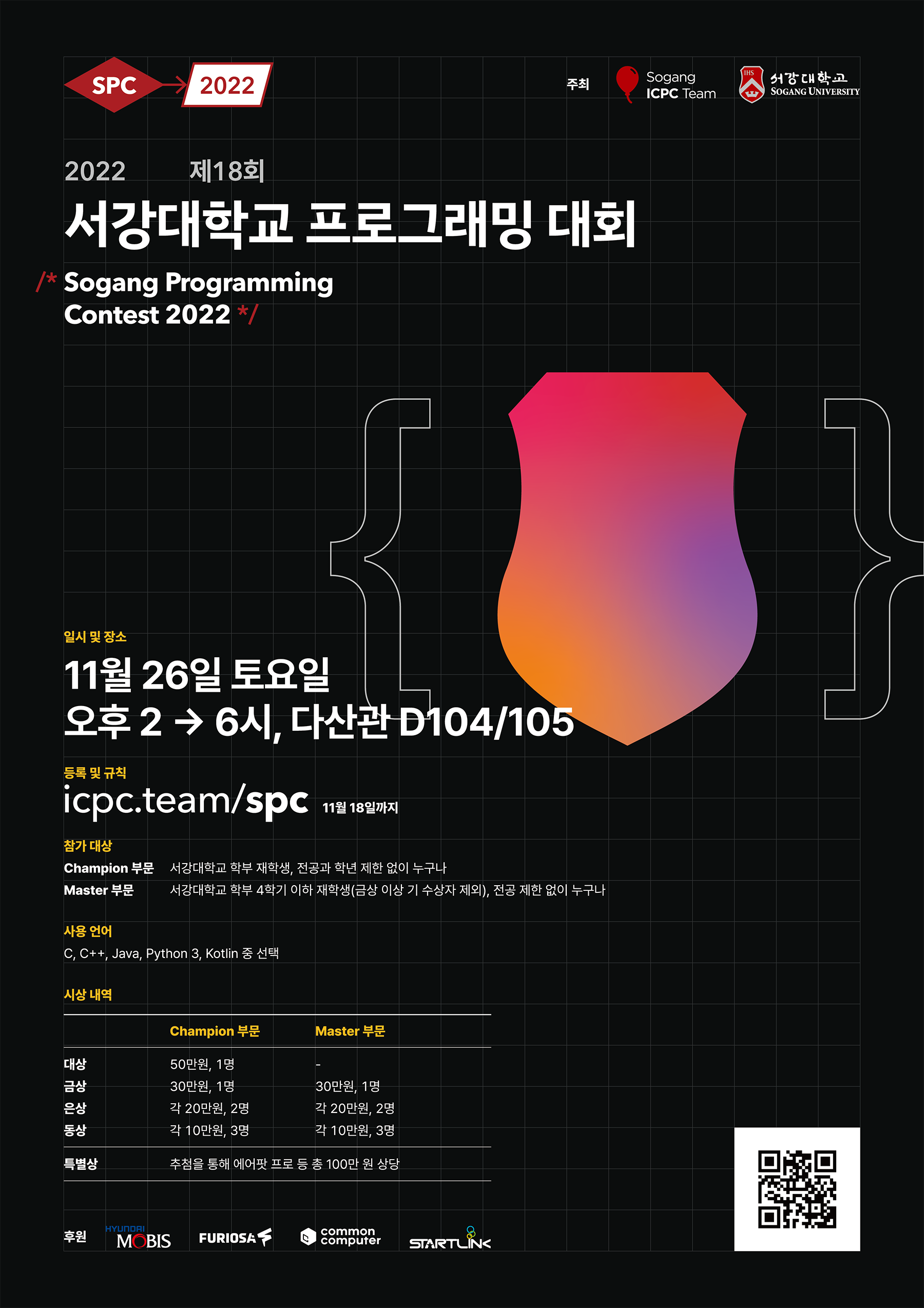 서강대학교 알고리즘 학회 Sogang ICPC Team에서 22 SPC를 개최하였다