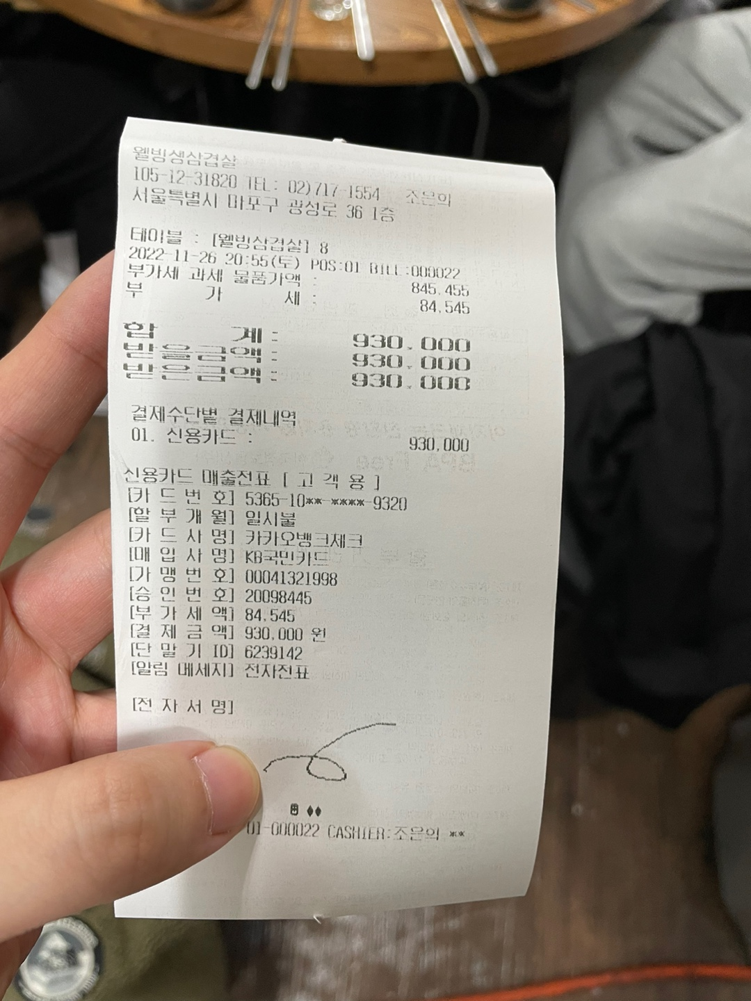 버거 사진은 없고 영수증 사진뿐이라 이거라도...