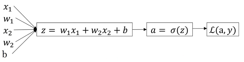 \(\mathcal{L}(a, y) = -(ylog(a)+(1-y)log(1-a))\)위 변수들로 계산 그래프를 그려보자