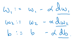 \(w=w-\alpha {d\mathcal{J}(w,b)\over dw}\)