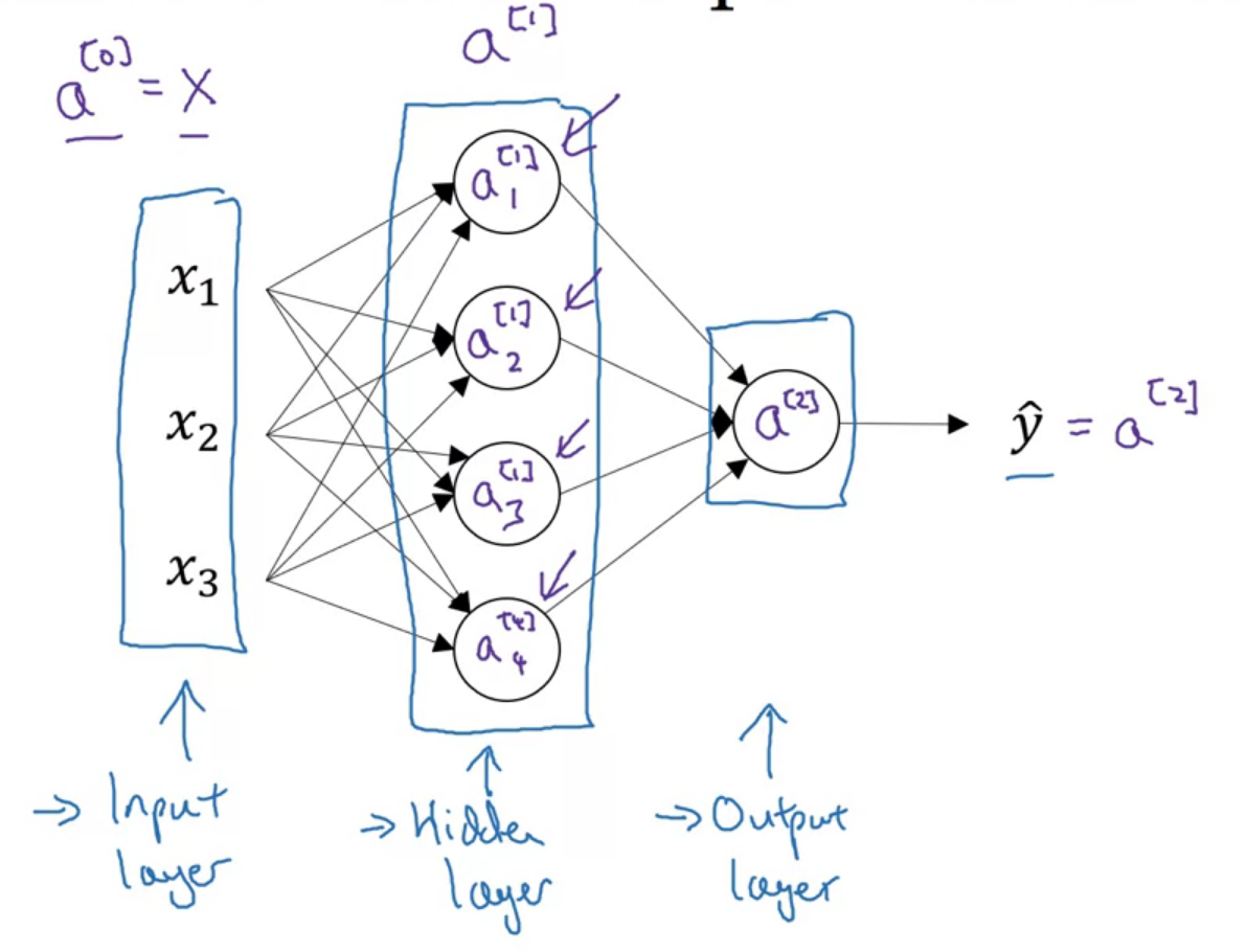 위의 신경망의 경우 \(L=4, a^{1}=4\) 이다