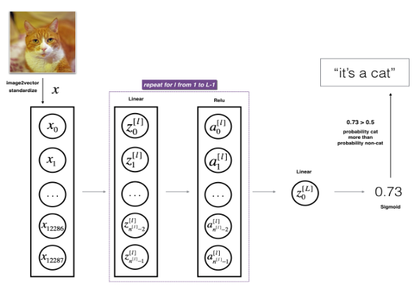 def L_layer_model(X, Y, layers_dims, learning_rate = 0.0075, num_iterations = 3000, print_cost=False):
